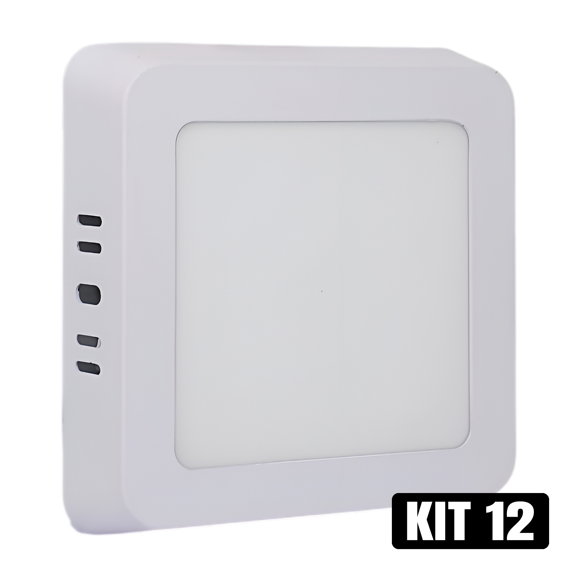 Kit 12 Plafon LED 6W Sobrepor Quadrado Branco Frio