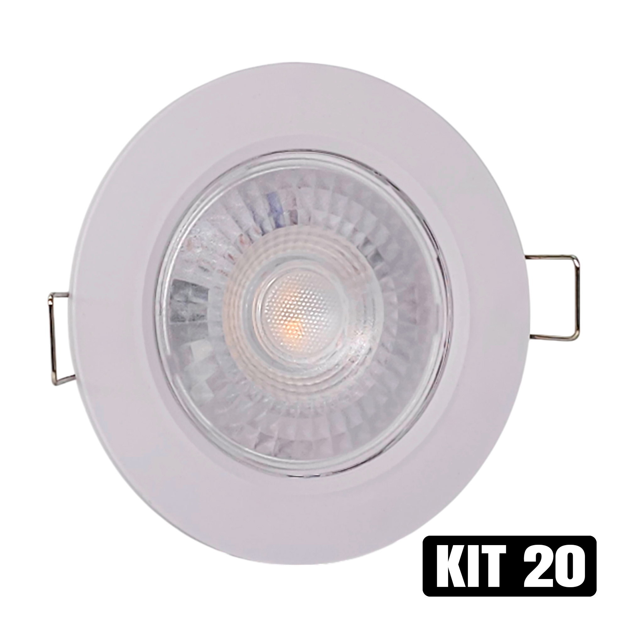 Kit 20 Spot LED 7W Embutir Redondo Branco Frio